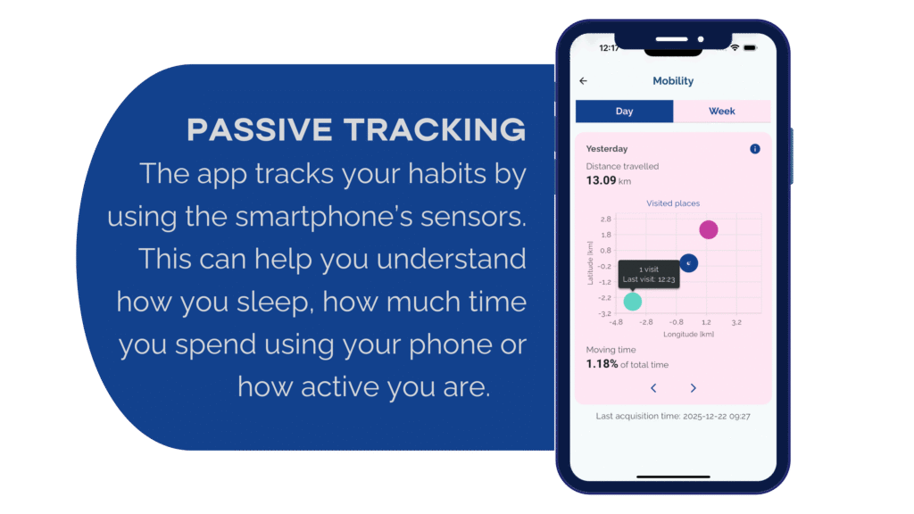 Designed to be seamlessly integrated into a clinical trial spanning several centers across Europe, this app leverages smartphone sensors to gather valuable insights into mobility, physical activity, and sleep patterns.