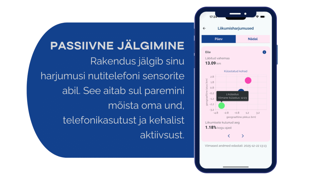 Kavandatud sujuvaks integreerimiseks kliinilisse uuringusse, mis hõlmab mitut keskust üle Euroopa, kasutab see rakendus nutitelefoni sensoreid, et koguda väärtuslikku teavet liikuvuse, füüsilise aktiivsuse ja unerežiimide kohta.